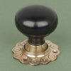 WDBun-AB • Solid Ebony & Unlacquered Aged Brass • Bun Knobs On Round Roses