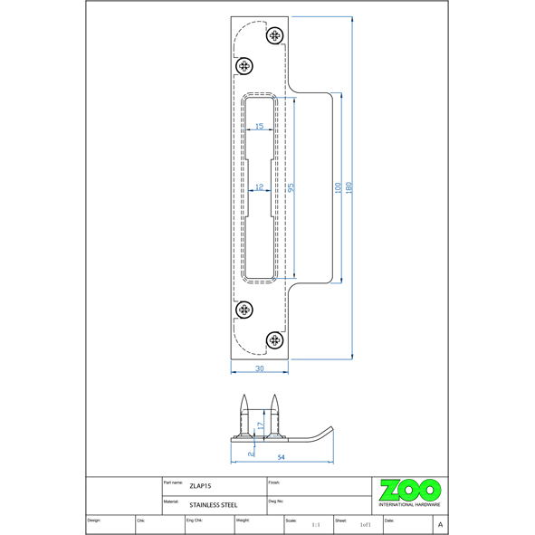 ZLAP15SS • Square Extended Striker Only • Satin Stainless • Square • For Zoo Hardware Sash & Bath Locks