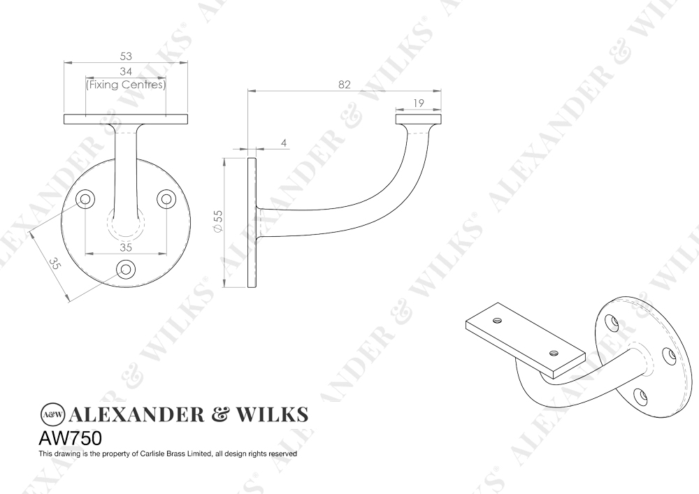 AW750PC • Polished Chrome • Alexander & Wilks Architectural Handrail Bracket