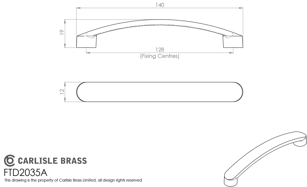 FTD2035ASN • 128 x 140 x 19mm • Satin Nickel • Fingertip Design Radiused End Flat Bow Cabinet Pull Handle