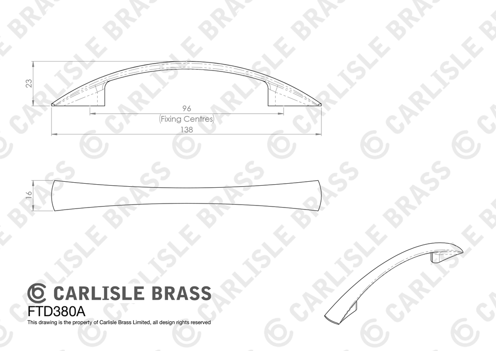 FTD380ASN • 96 x 138 x 23mm • Satin Nickel • Fingertip Design Waisted Flat Bow Cabinet Pull Handle