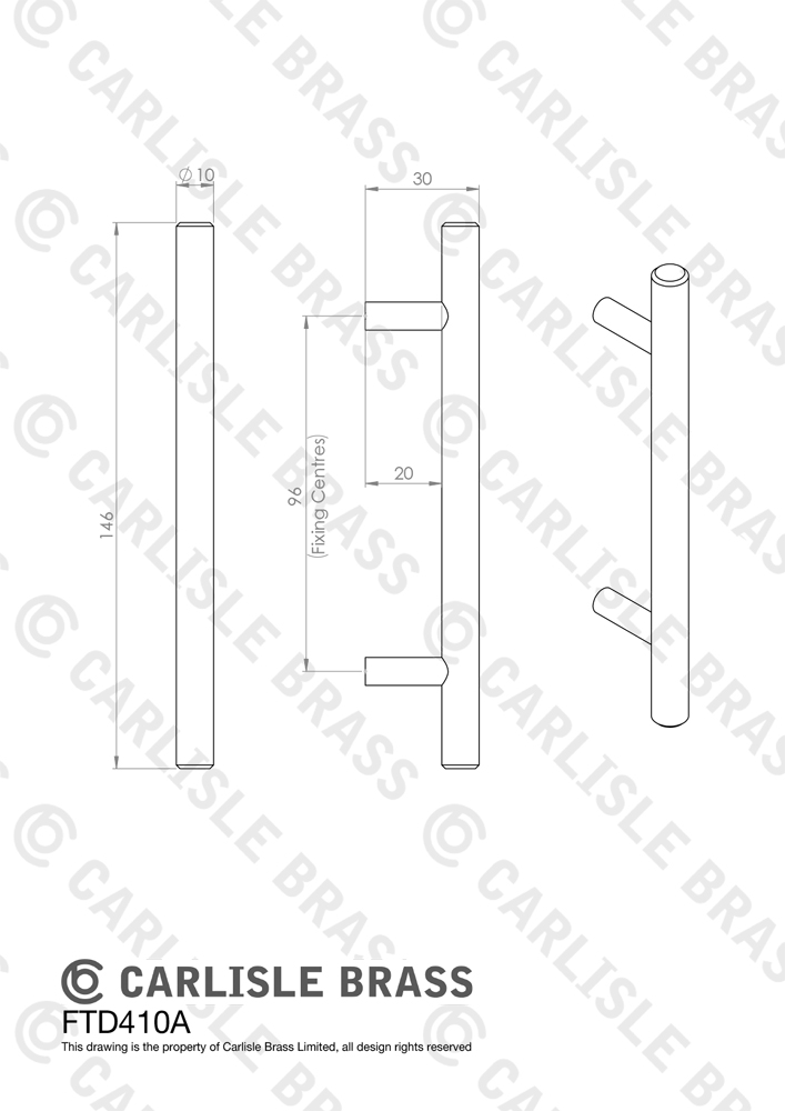 A straightforward T-Bar handle. Round slender bar atop two inset cylindrical posts. Commonly used in modern interiors in both residential and commercial interiors.