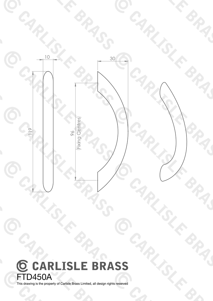 FTD450ACP • 96 x 119 x 30mm • Polished Chrome • Fingertip Design Curved Bow 10mm Ø Cabinet Pull Handle