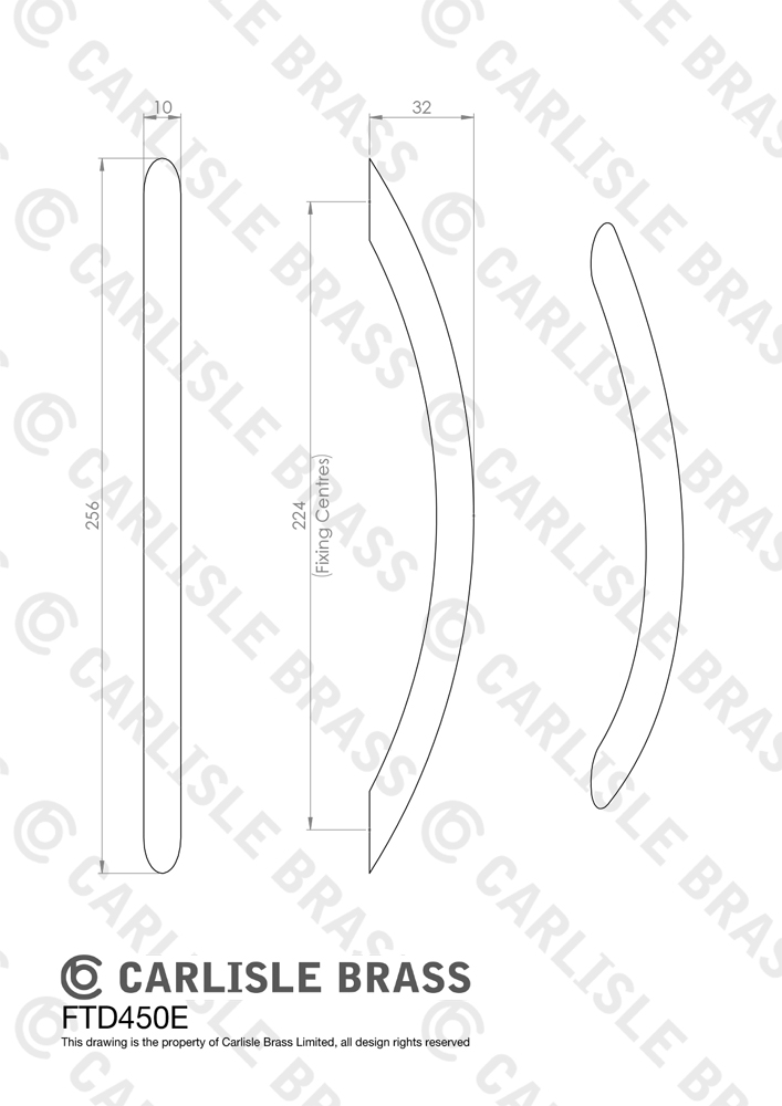 FTD450ESN • 224 x 256 x 32mm • Satin Nickel • Fingertip Design Curved Bow 10mm Ø Cabinet Pull Handle