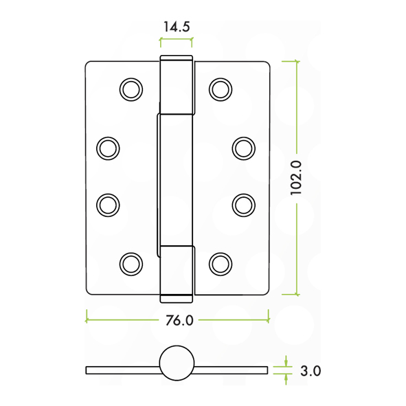 Dimensions : 102 x 076 x 3.0mm [height x width open x leaf thickness]